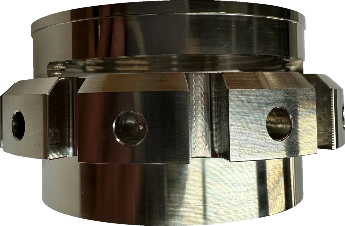 Made from 6061-T6 aluminum. Nickel coated. Stronger than OEM plastic pre-load ring. Larger band clamping area, allowing screw to tighten to OEM torque spec without band bottoming. Adjustment holes in tabs allowing the use of a punch to assist when turning. Shock does not need to be disassembled to install.. Will not rotate while in use..