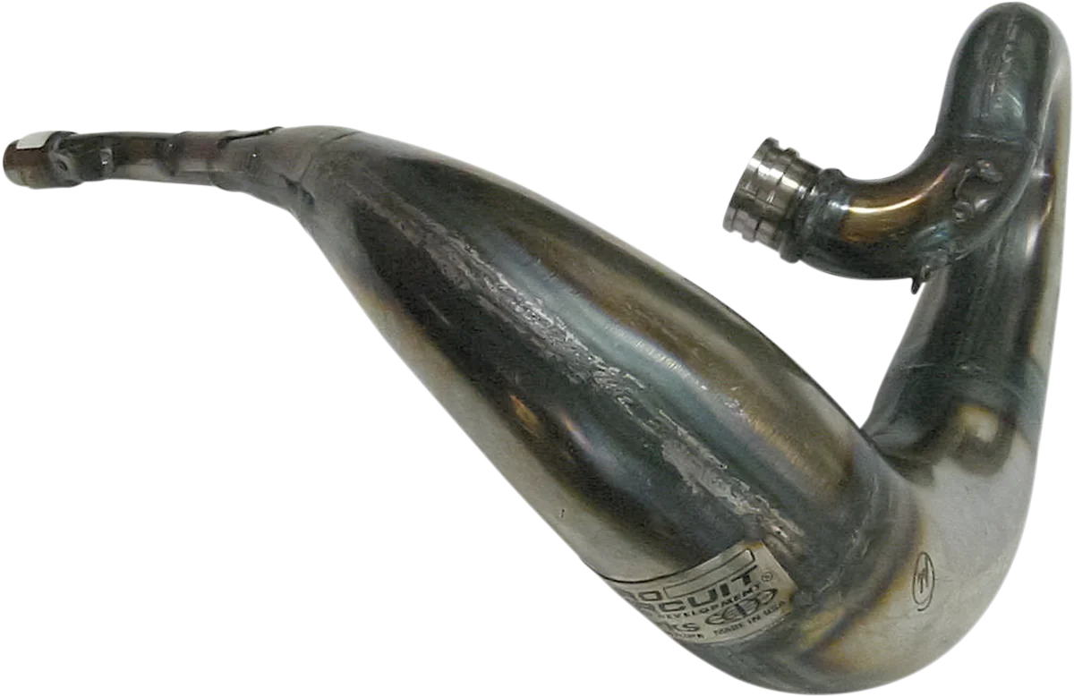 The first Pro Circuit pipe built with bare metal finish, giving it a unique style that sets it apart from all other pipes. Durable construction conforms to the natural shape of the motorcycle for exceptional fit and performance. Reinforced brackets and stingers prevent cracking, and CNC-machined flange provides precise leak-free fit. Distinctive design yields increased horsepower and stronger throttle response throughout the entire rpm range. Excellent choice for those who want factory-level high-performance features. Features include stamped AKDQ high-quality carbon steel construction. Hand-welded and pounded seams. Embossed nameplate and CNC-machined exhaust flange.