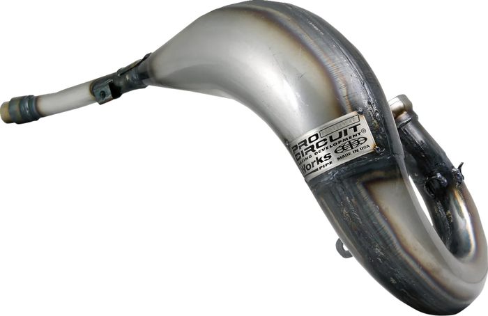 Designed by professional motocross and supercross racer, Ryan Vilopoto. Constructed of high-quality carbon steel with hand welded and pounded seams. Reinforced mounting brackets and stinger. Designed to be stronger on the bottom-to-middle part of the powerband. Beneficial off the start or on tighter, softer tracks where acceleration out of corners is key. Made in the U.S.A..