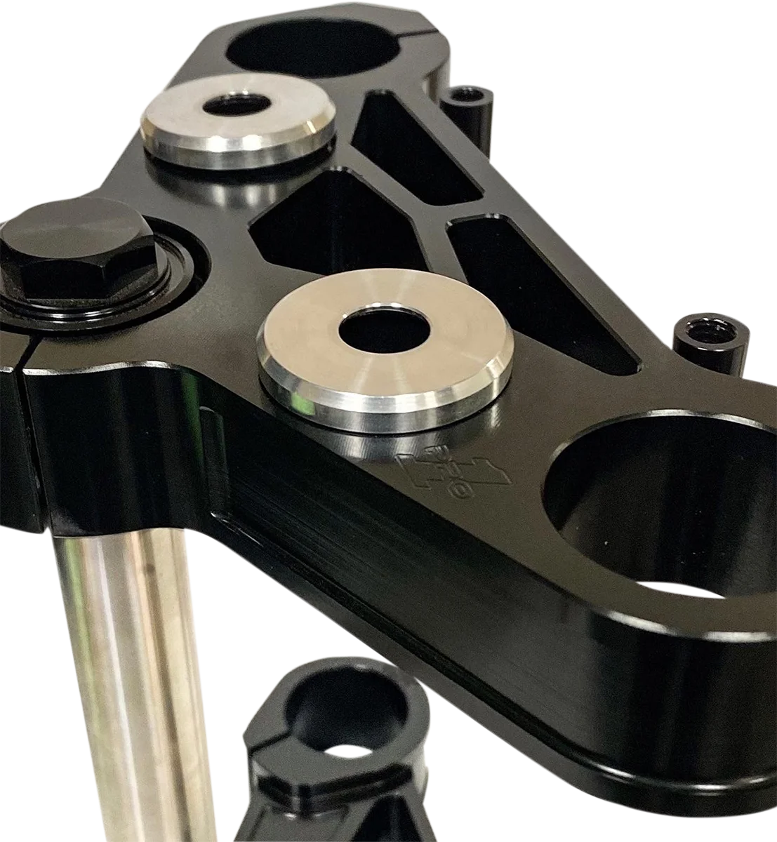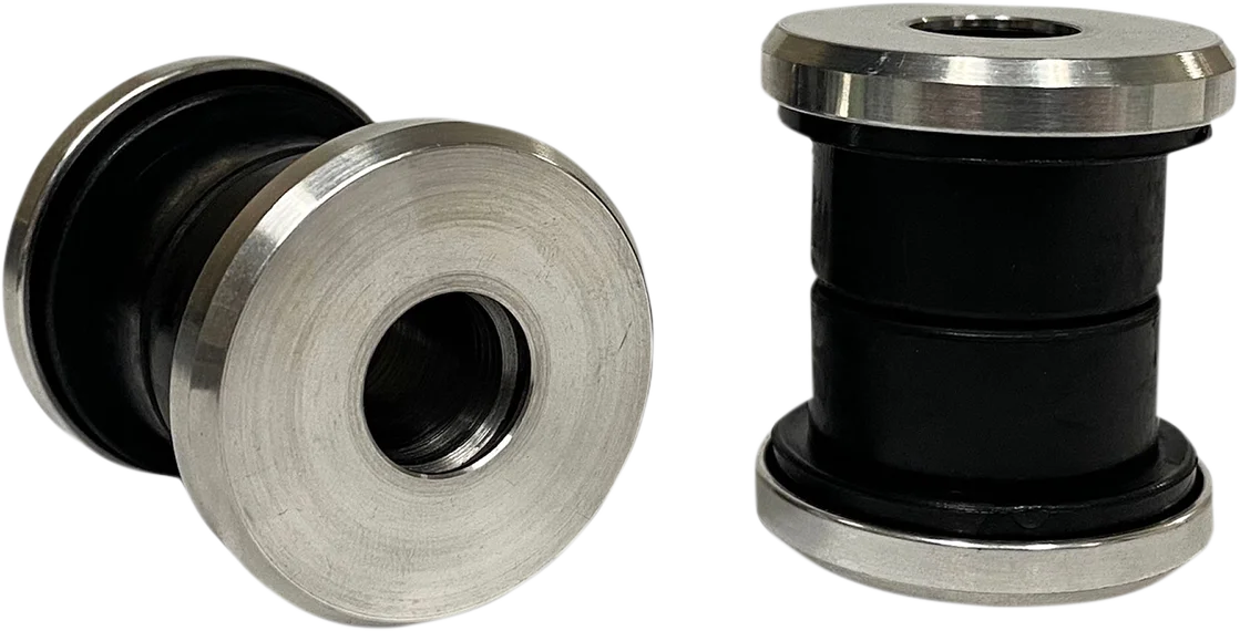 Kit contains high-quality polyurethane bushings that reduce handlebar slop & vibration. Includes CNC machined billet aluminum caps. Sold in complete kits with (4) bushings, (4) washers and (2) steel inner sleeves.