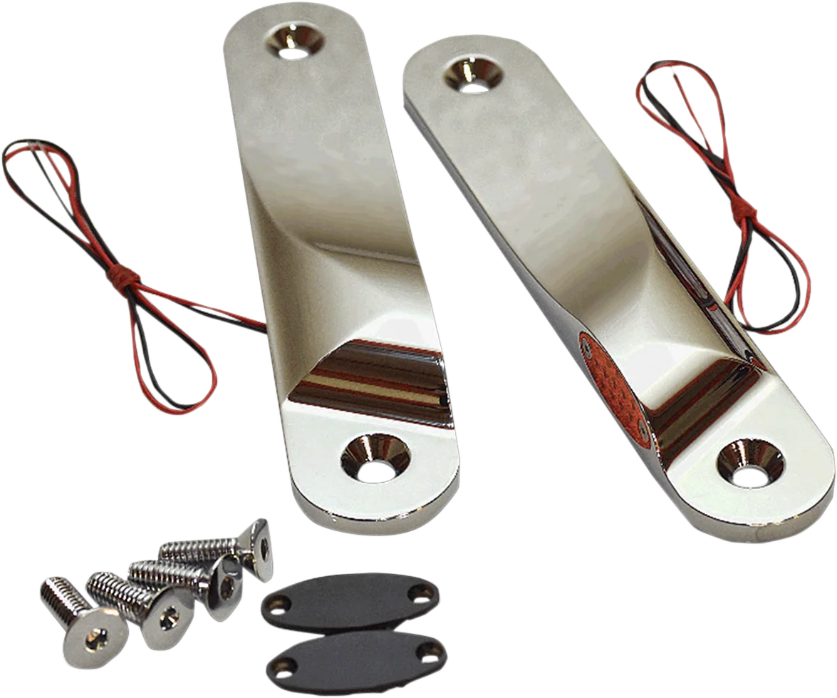 Custom way to replace stock turn signals. Bolt directly to stock mounting holes with no drilling. Super-bright, single-function amber LEDs and amber lenses. Include an extra set of smoke lenses for a "clean" look. Machined from 6061-T6 aluminum.
