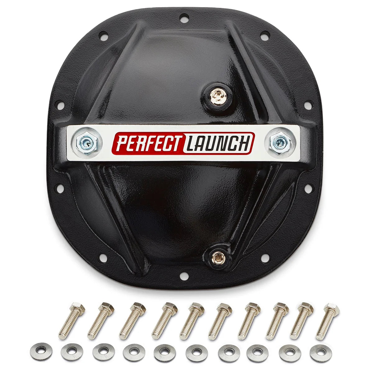 | Description_MKT | Reinforced lightweight aluminum rear end covers designed to strengthen the rear housing case in heavy torque situations. The PERFECT LAUNCH logo is prominently displayed on a precision milled surface. Each cover includes two bolts to stabilize bearing main caps, fluid capacity and magnetic drain plugs, and mounting bolts. All covers have a black painted finish. |
