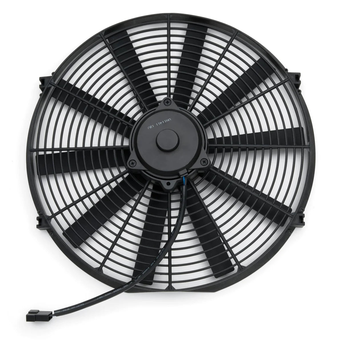 Description_MKT | This reversible fan helps prevent overheating in stop-and-go traffic, designed to fit the most popular cars and trucks, increases gas mileage, improves engine performance, frees the water pump pulley for more RPM, installs in minutes with simple hand tools, and are reversible (mounts in front or back of radiator). Ultra thin design to fit cramped locations. Reinforced glass filled polypropylene blade and plastic housing for minimized weight. Nylon tie mounting kit included. Nominal fan size is based upon approximate overall assembly diameter. |