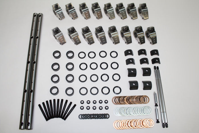 Description_EXT | Rocker Arm Kit; 1.5 Ratio; Shaft Mount; Incl. 16 Alum Rockers/Hardened Shafts/Hold Downs/Spacers/Shims/Ball Style Valve Lash Adjusters. |