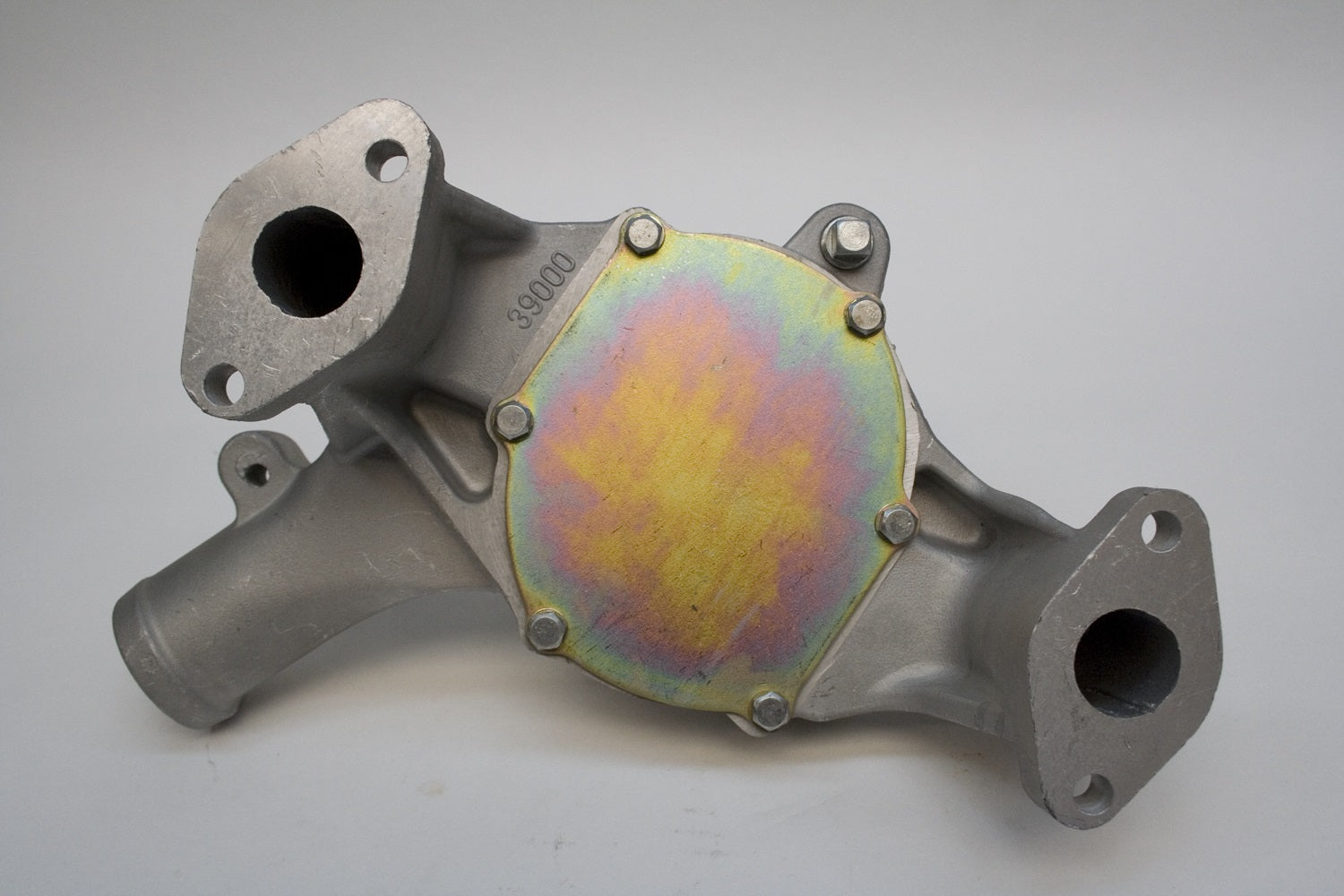 Description_MKT | PRWs high flow aluminum water pumps are engineered to deliver an increased water flow. These super velocity pumps significantly improve cooling for all street, high performance and racing applications. With special cast-iron impeller and tight clearances, |
