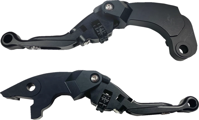 Unbreakable spring loaded hinge and folding lever design. Adjust from stock length to 1-1/2" shorter. Micro-Adjuster offers precise custom ergonomics. CNC-machined from high quality aluminum.