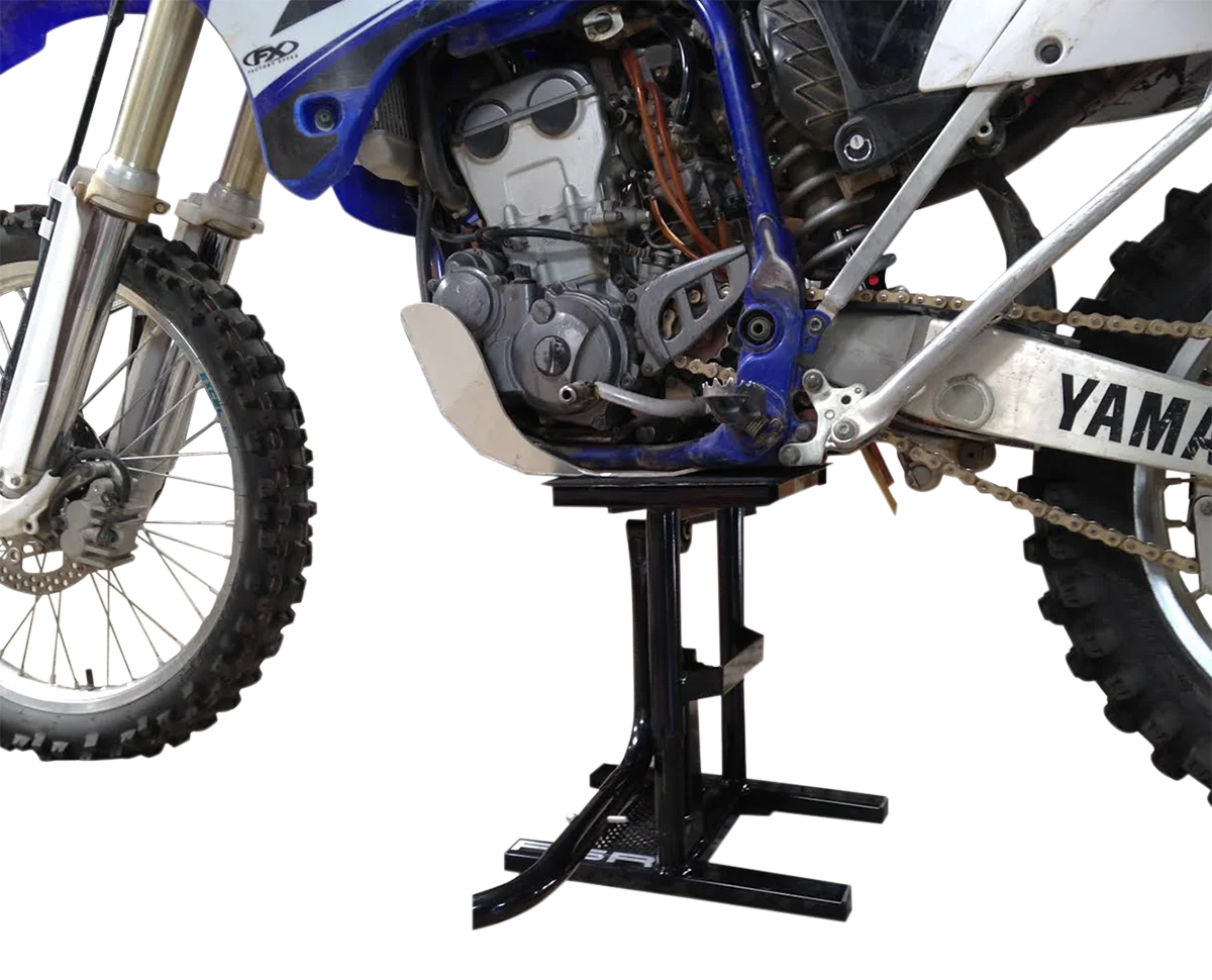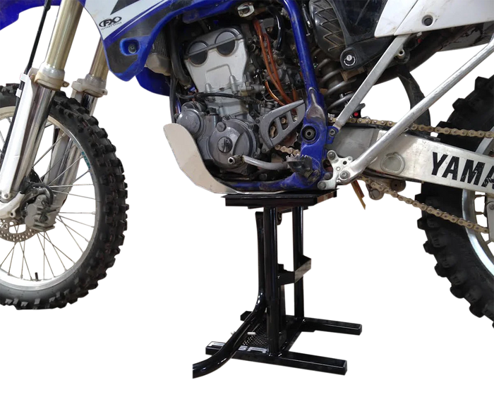 Simple, light and durable stand for dirtbikes. Rubber padded lifting platform.
