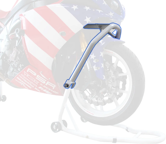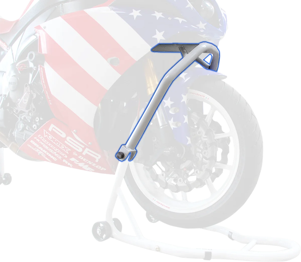 Must have for removing and servicing forks; removing front wheel or replacing front brake pads/rotors. Lifts front end from under the lower triple clamp with a model specific pin (not included). Converts PSR® Economy Stand into a triple tree lift stand. Easy to clean.