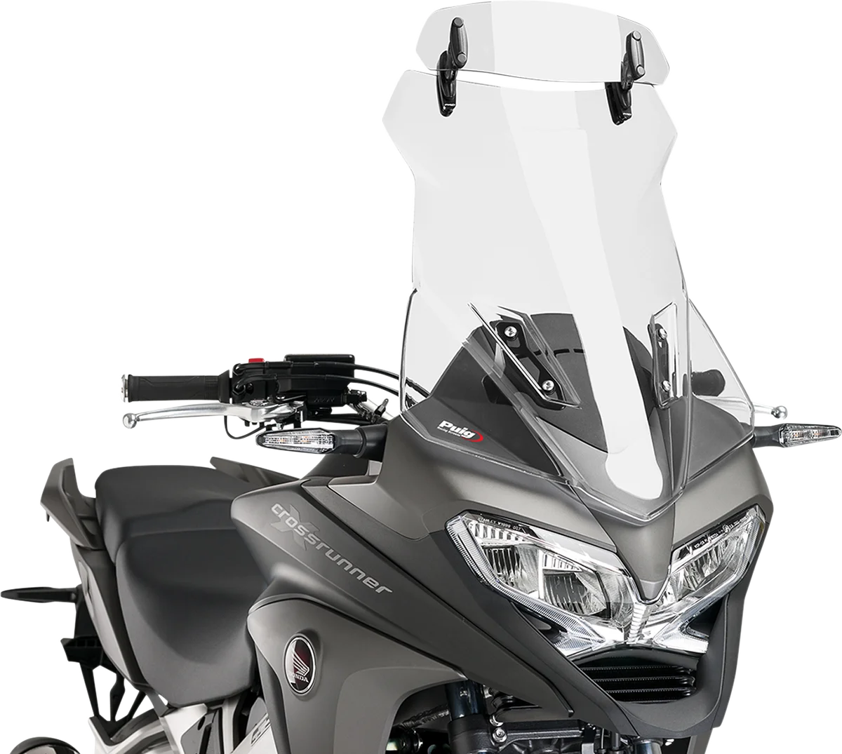 Multi-adjustable visor adaptable to our Puig and OEM windscreens.. Visor is mounted by clip-ons and does not need to be drilled to the windshield.