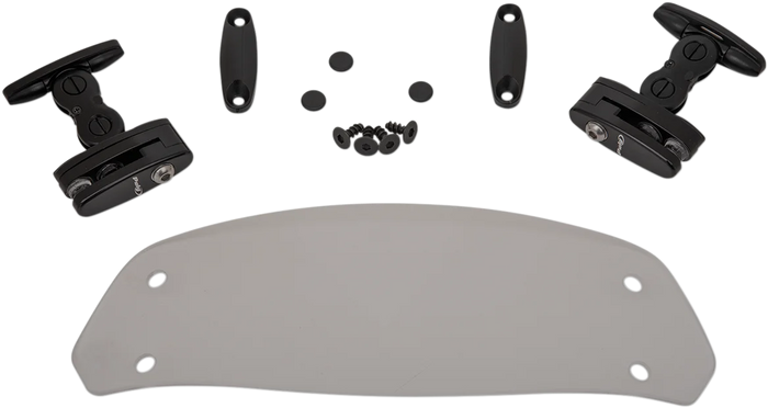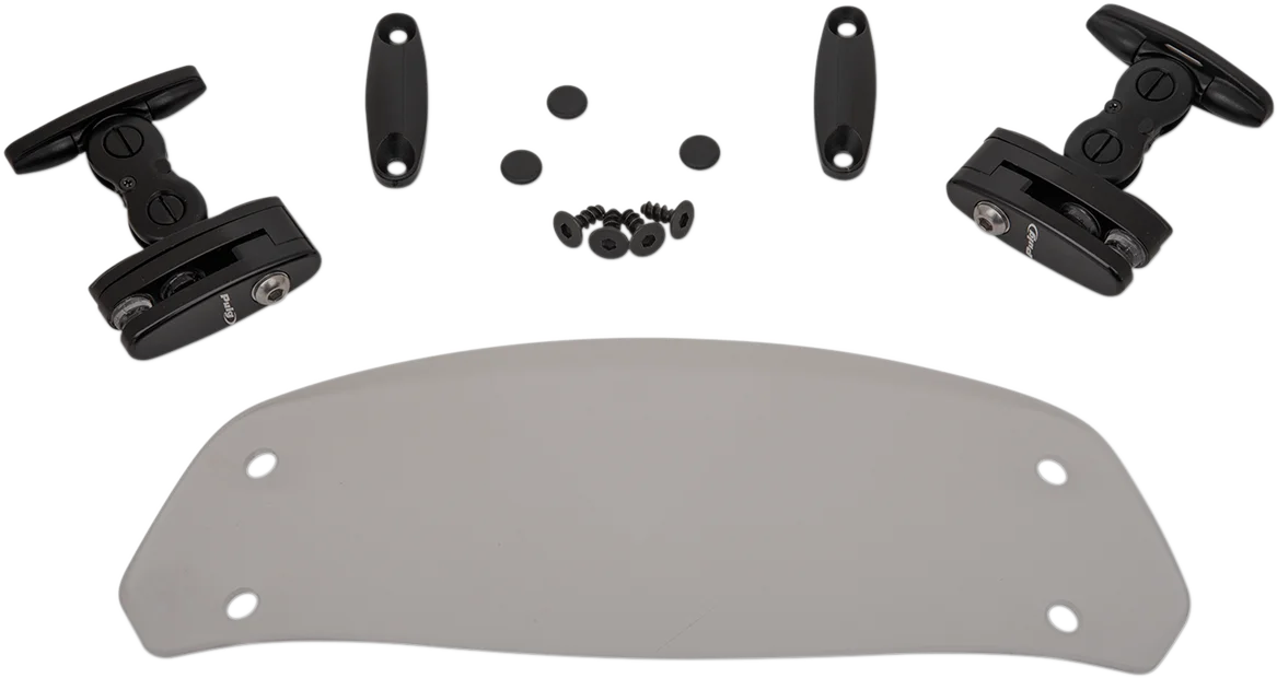 Multi-adjustable visor adaptable to our Puig and OEM windscreens.. Visor is mounted by clip-ons and does not need to be drilled to the windshield.
