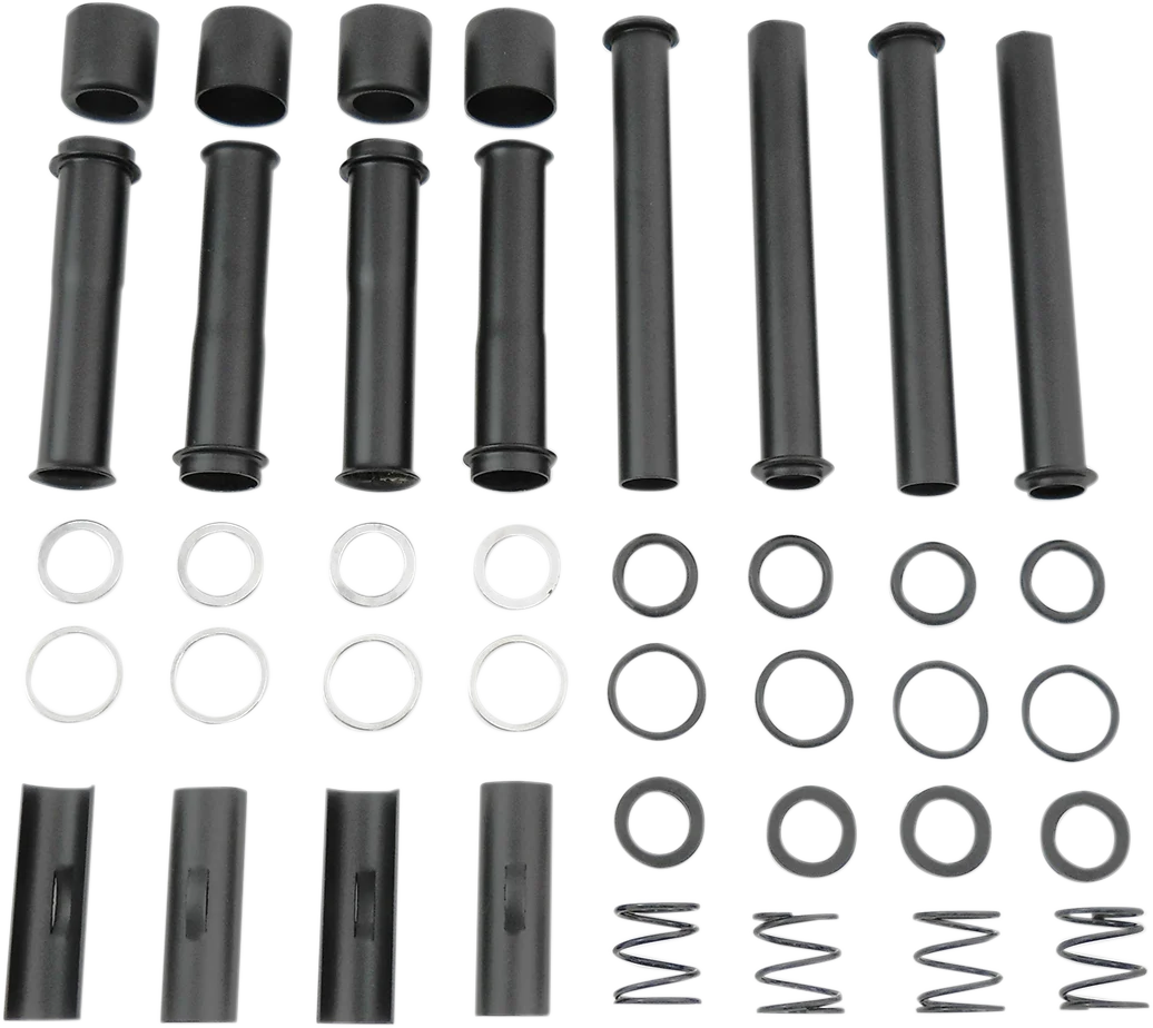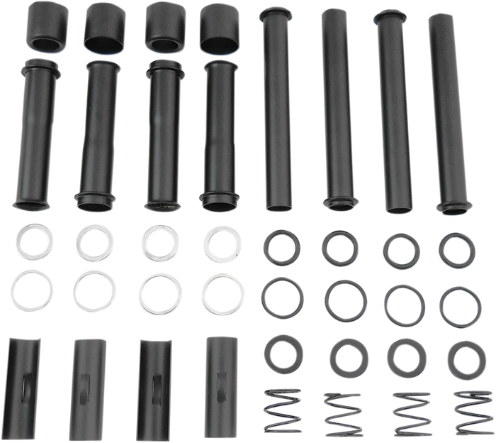 Kit includes upper and lower tubes, clips, cups, springs and washers (O-rings/corks sold separately). One kit will do a complete engine.