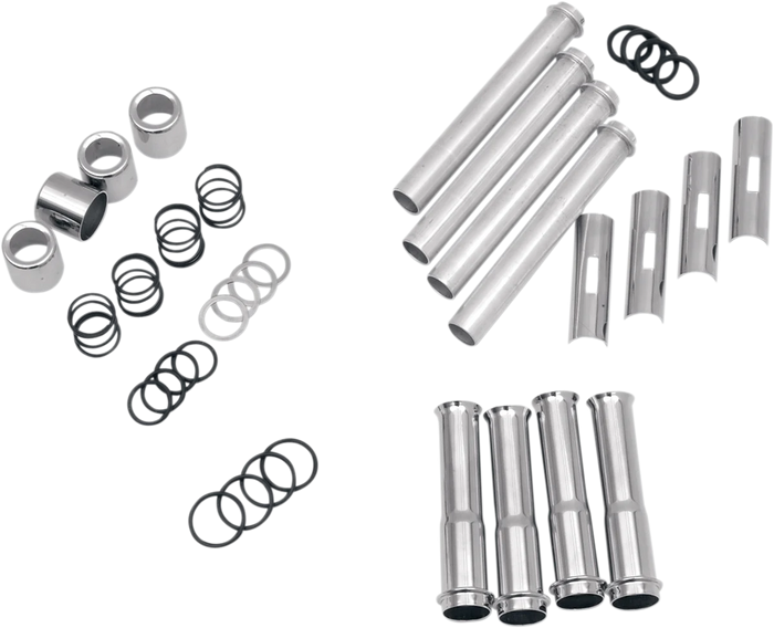 Kit includes upper and lower tubes, clips, cups, springs and washers (O-rings/corks sold separately). One kit will do a complete engine.