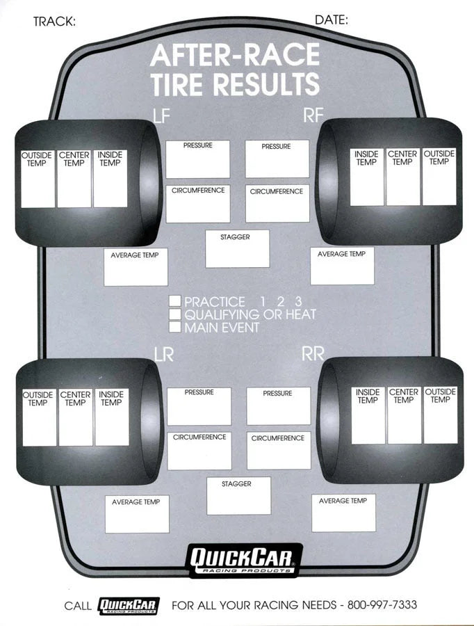 Quickcar Racing After Race Tire Set-Up Forms (50 PK) 51-215