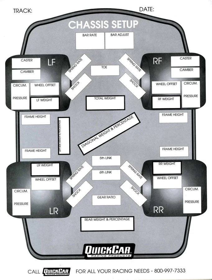 Quickcar Racing Chassis Set-Up Forms (50 PK) 51-201