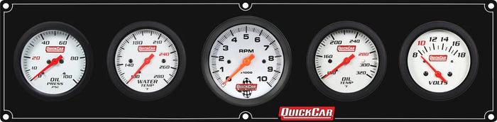 Gauge Panel Assembly - Extreme - Plain Panel - Oil Pressure / Oil Temperature / Water Temperature / Voltmeter / 3-3/8 in Tachometer - 2-5/8 in Diameter - White Face - Warning Light - Kit