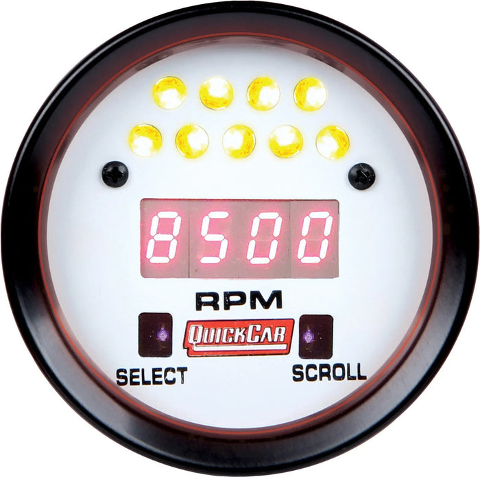 Tachometer - Extreme - 18000 RPM - Digital - 2-5/8 in Diameter - Recall - Shift Light - White Face - Each