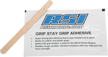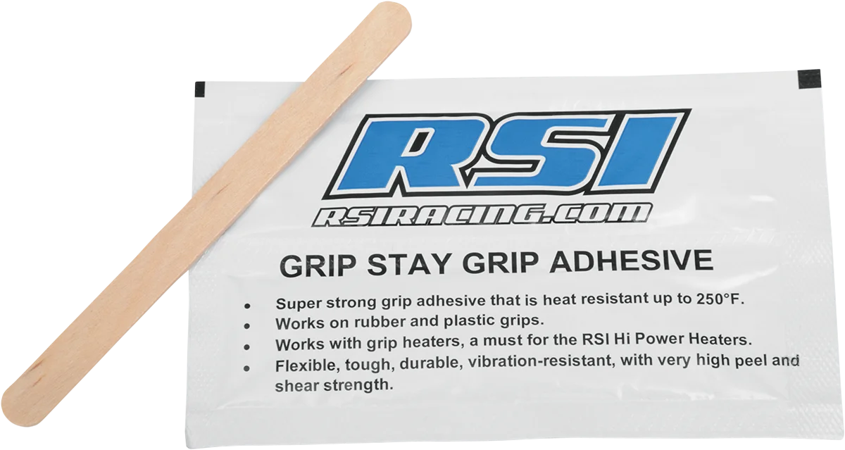 Super-strong grip adhesive is heat resistant up to 250°F. Works on rubber and plastic grips. Works with grip heaters; a must for RSI Hi Power Heaters. Easy double bubble pack dispenses equal amounts for a perfect mix ratio. Contains enough adhesive for one pair of grips, even 8" long grips.