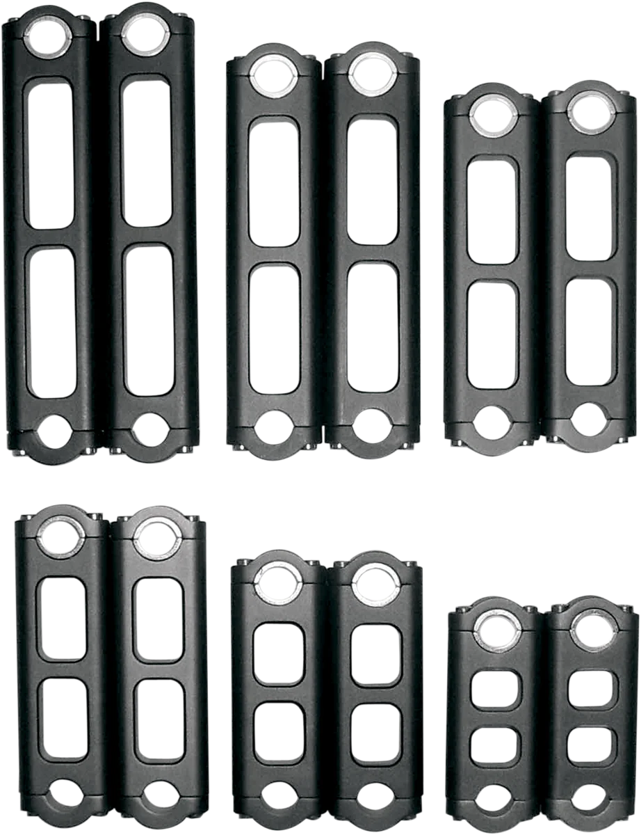 Dual-pivoting adjustability allows the rider to comfortably position the handlebar. Constructed of 6061-T6 aircraft aluminum which resists bending and twisting. Includes custom inserts that allow the riser to fit stock 7/8" handlebars and oversize 1-1/8" handlebars. For use with pivot-style steering posts or steering posts with adapter tubes. Rise is measured from center to center.