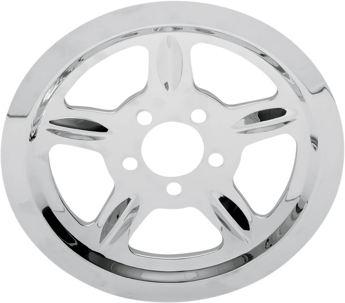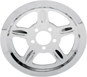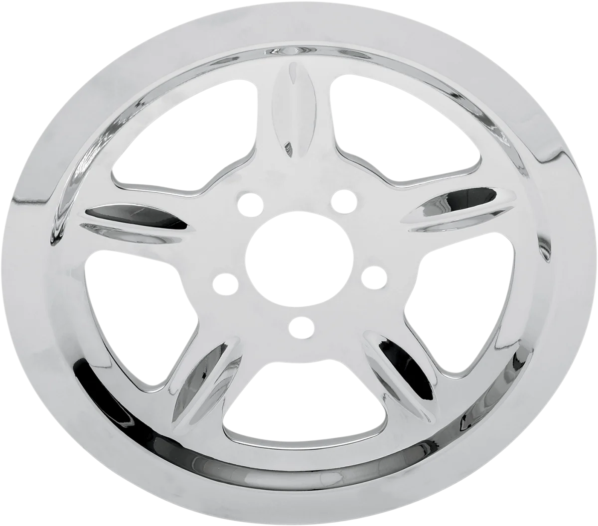 Precision-formed, chrome-plated rear pulley inserts. Designed to match OEM pulley. Fit the outer portions of the belt drive sprocket.