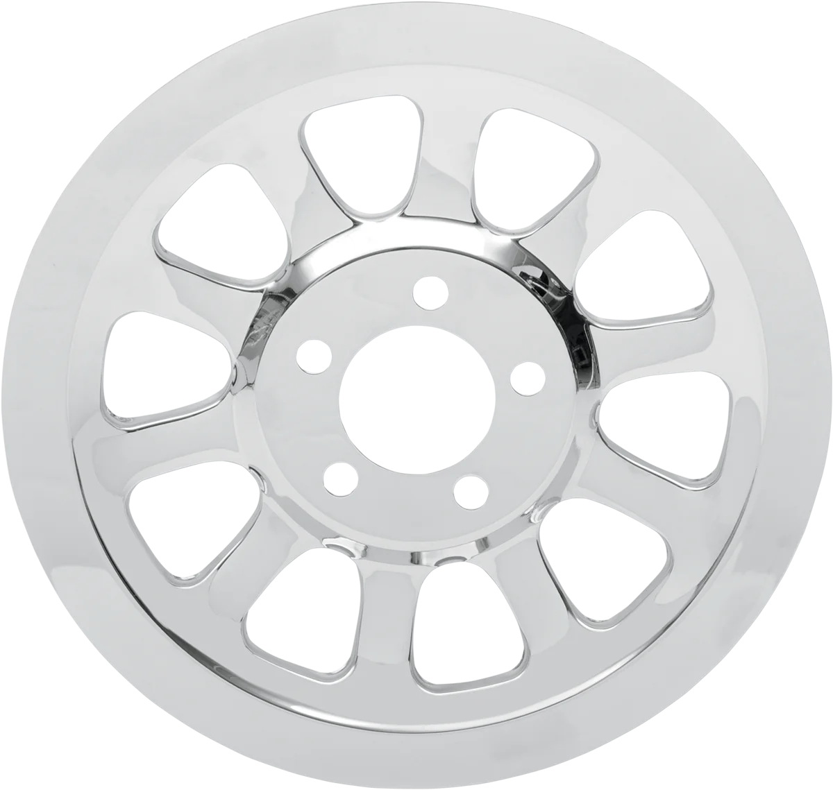 Precision-formed, chrome-plated rear pulley inserts. Designed to match OEM pulley. Fit the outer portions of the belt drive sprocket.