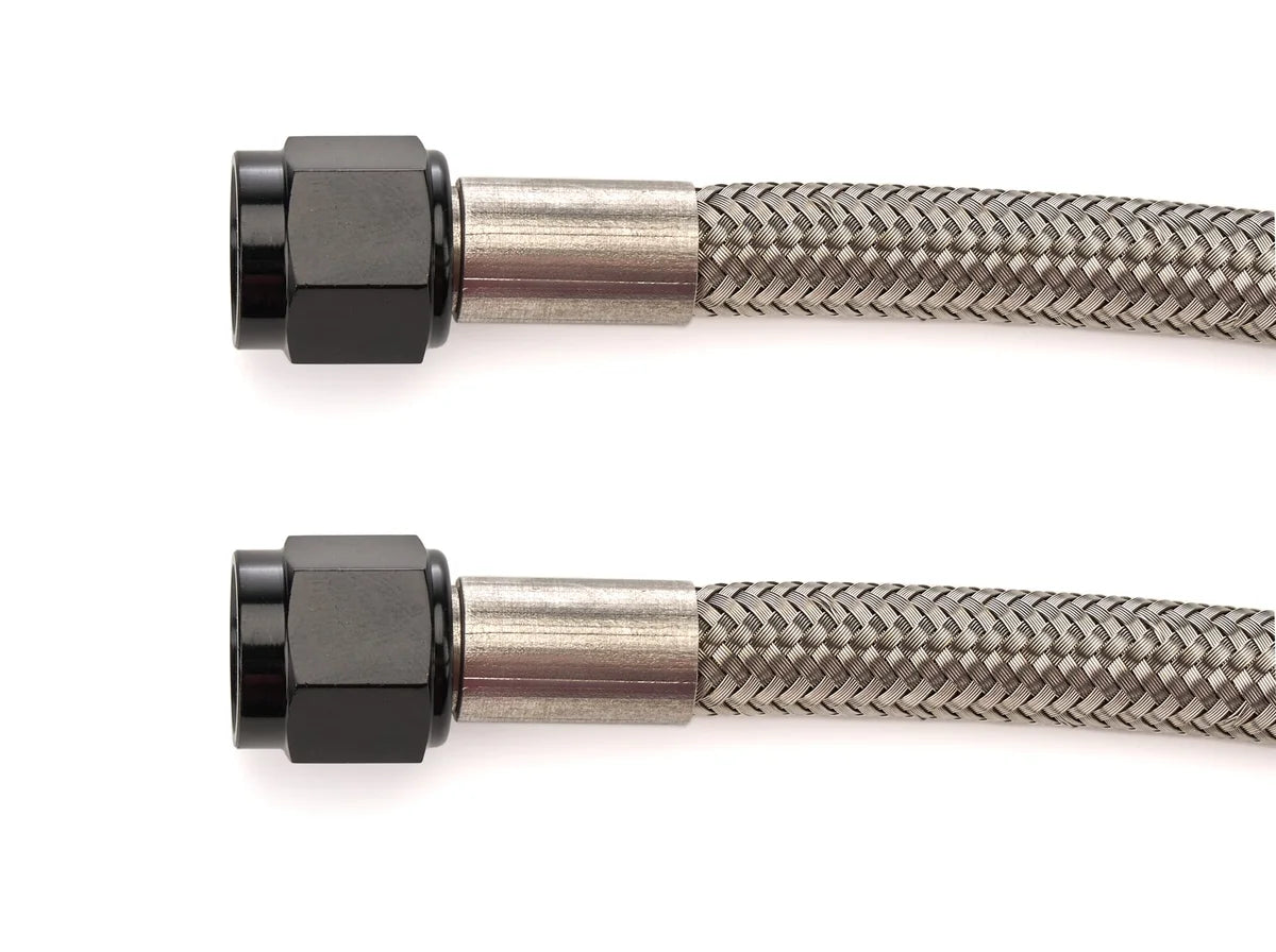 AN Hose Assembly - 900 Series - 12 in Long - 6 AN Hose - 6 AN Straight Female to 6 AN Straight Female - Braided Stainless - PTFE Lined - Aluminum - Black Anodized - Each
