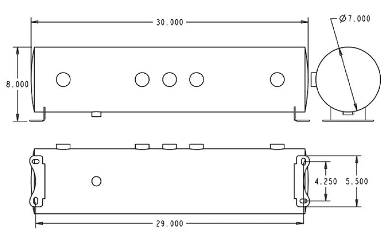 Ridetech Air Tank 5 Gallon Aluminum w/ 5- 1/4in Ports and 1-1/8in Port - Side View