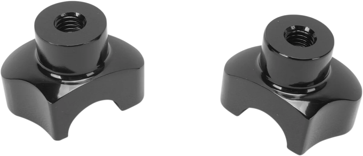 These risers are forged from 6061-T6 aluminum for superior strength. Drilled and tapped for 1/2"-13 riser bolts (bolts sold separately). CNC-machined for precision fit on handlebars with a 1" diameter clamping area. Designed to fit applications with 3-1/2" on-center mounts and will accept most OEM-style top clamps with offset mount holes.