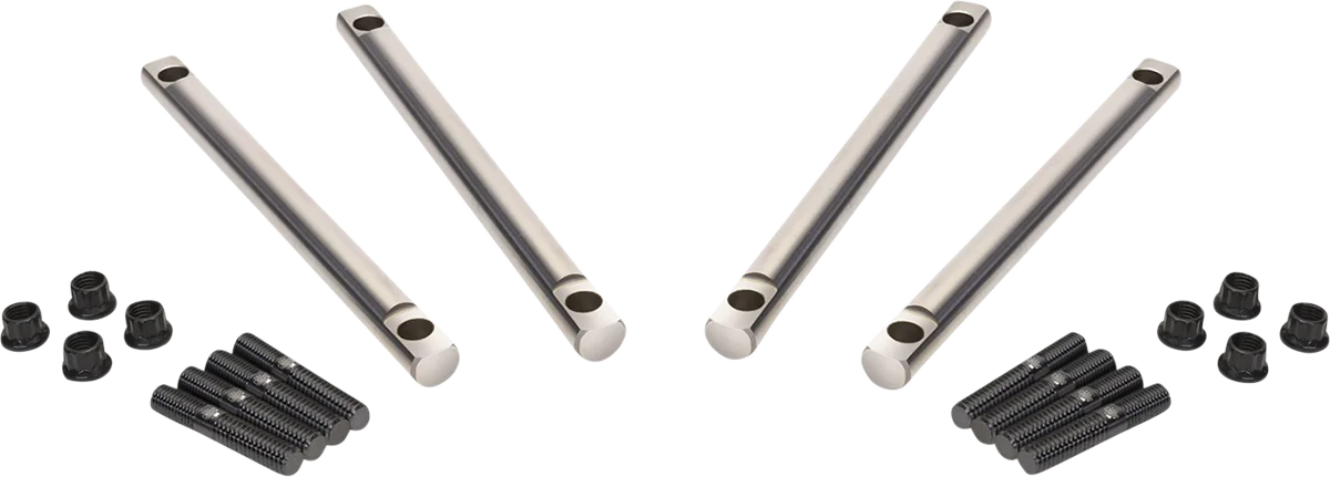 4130 stud and nut kit replaces the stock hardware used to secure the rocker shafts. Compared to a stock “bolt”, these JIMS manufactured studs allow the technician the assembly finesse required when torqueing the rocker arm shafts on the cylinder head during engine assembly. These shafts not only improve the stock head configuration; they are a must in a performance application with increased spring pressure.