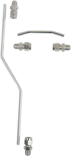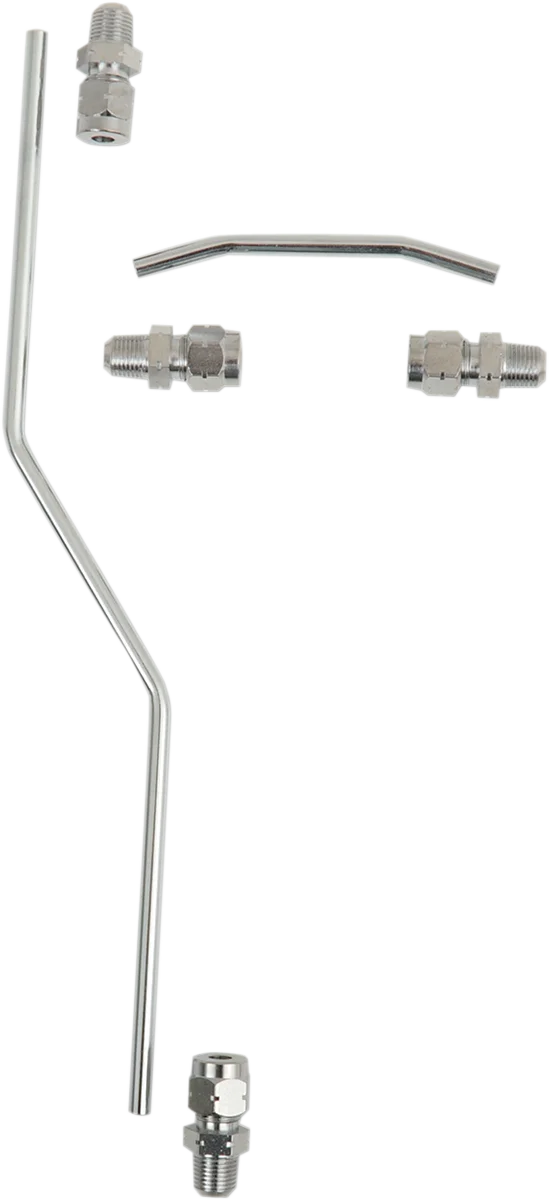 Chromed steel overhead oil line set includes crossover line and crankcase-to-rocker box line. Complete with fittings and seals, which are also available separately.