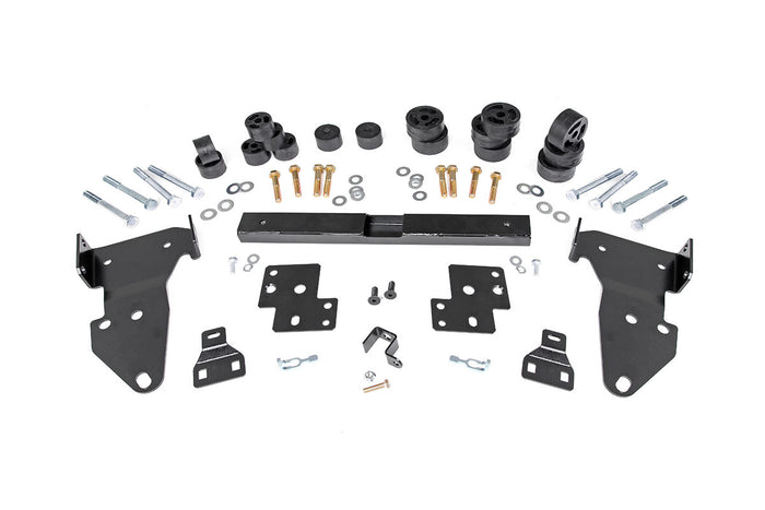 | features | Increased ground clearance Includes front and rear bumper brackets Body lift pucks are made from fiberglass reinforced nylon for superior strength and durability Features 10.9 grade body mount bolts Hardware is zinc coated to protect against the elements Works with factory wheels Maintains factory ride |