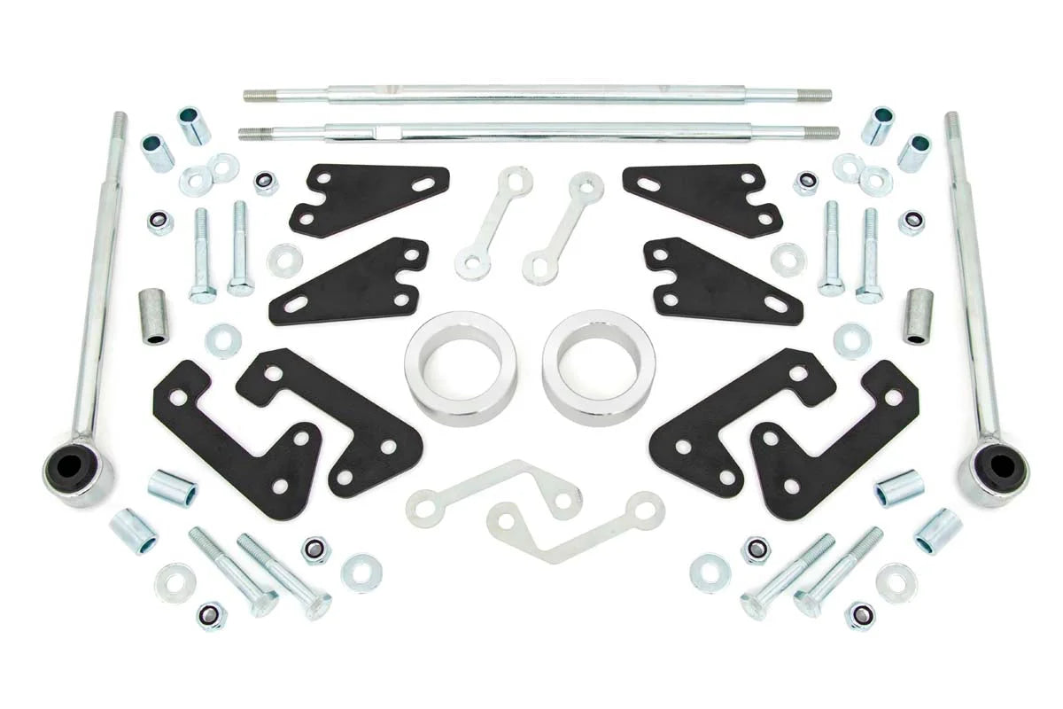 | rear_components | Sway Links Stud to Stud x2 Bracket Spacer Sleeves x4 Lift Brackets x4 0.048 Width Shims x2 |