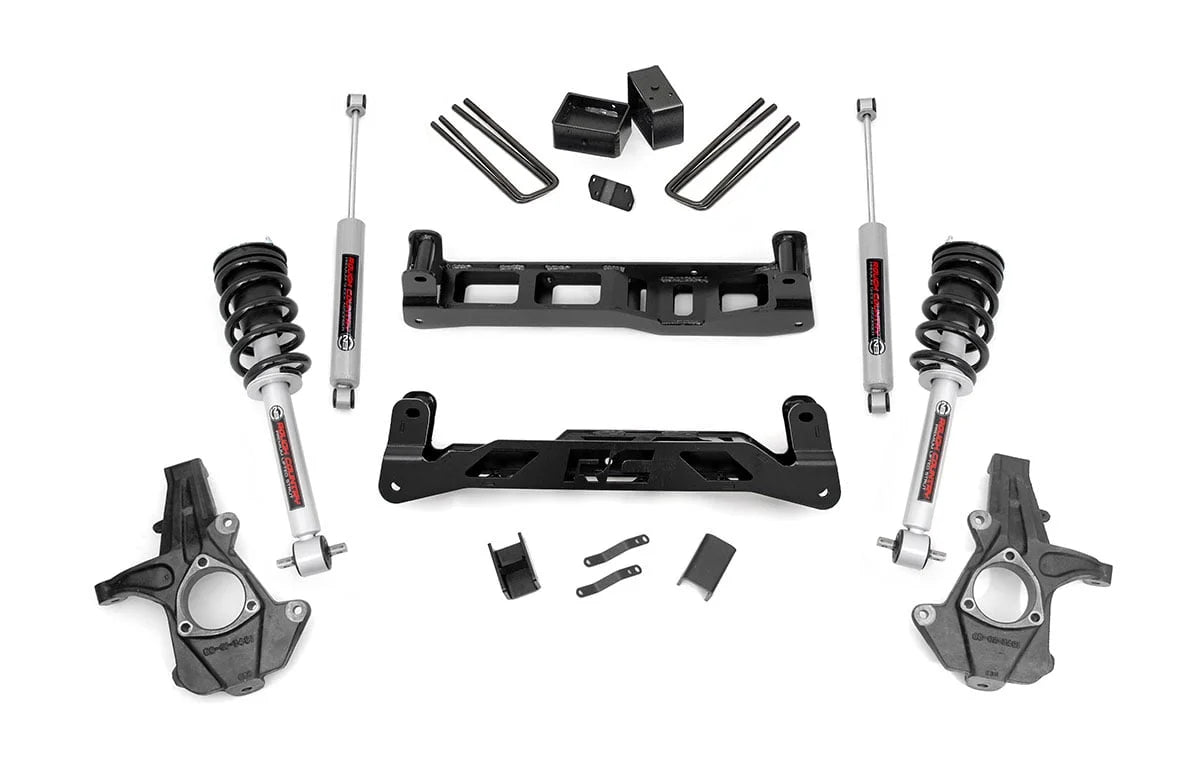 | features | Can run 33" tires on factory 20" wheels. Provides highly sought level stance. High clearance crossmember design gives unmatched ground clearance. Requires no modification to the stock drivetrain or exhaust. 100% precision laser cut materials using the latest computer aided design process. Re-uses stock front skid plate Includes application valved N2.0 series shock absorbers which offer the best in balanced performance for on and off-road use. |