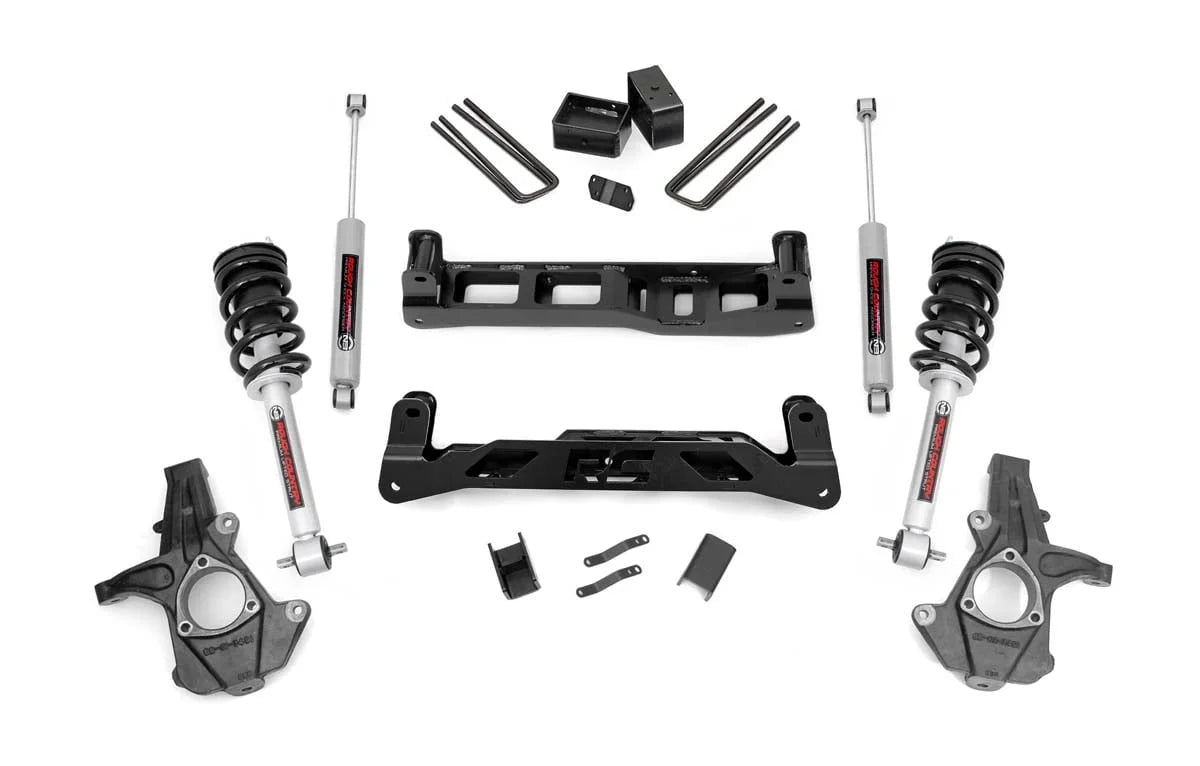 | features | Can run 33" tires on factory 20" wheels. Includes pre-loaded coil for no-fuss installation Provides highly sought level stance. High clearance crossmember design gives unmatched ground clearance. Requires no modification to the stock drivetrain or exhaust. 100% precision laser cut materials using the latest computer aided design process. Re-uses stock front skid plate Includes application valved N3 series shock absorbers which offer the best in balanced performance for on and off-road use. |