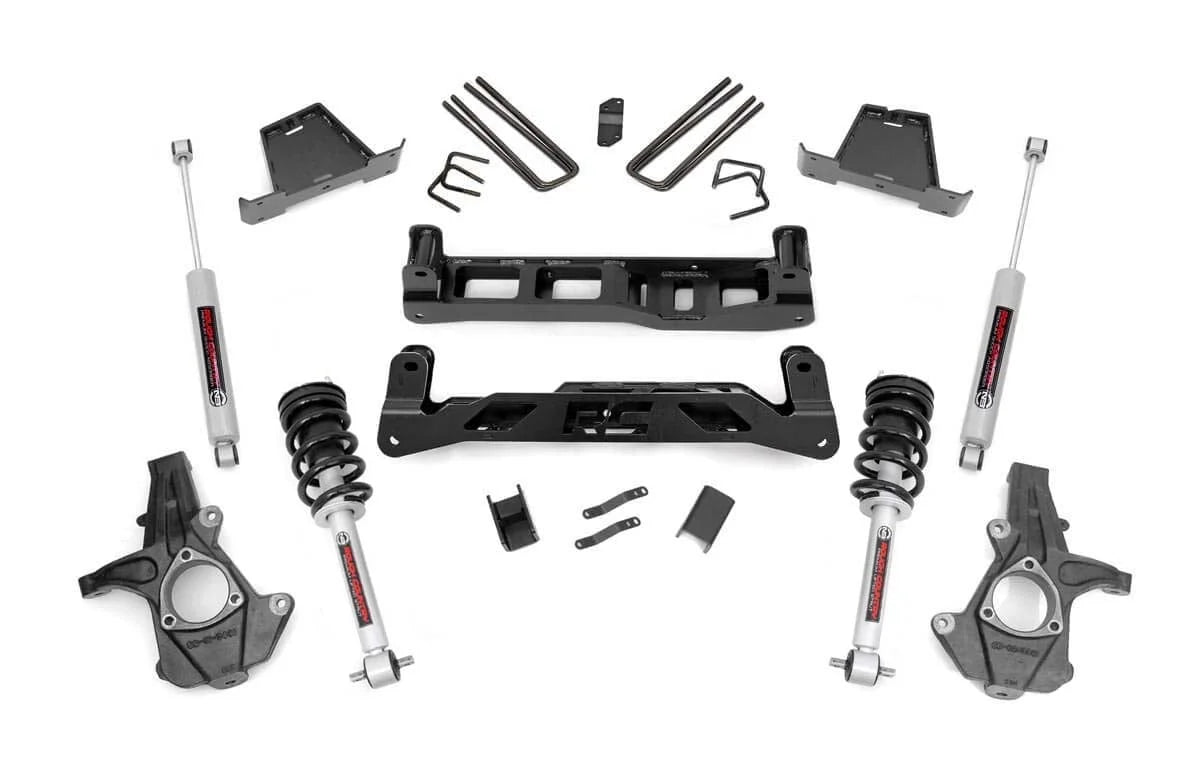 | features | Can run 35" tires on factory 20" wheels. Provides highly sought level stance. High clearance crossmember design gives unmatched ground clearance. Requires no modification to the stock drivetrain or exhaust. 100% precision laser cut materials using the latest computer aided design process. Specially designed anti-axle wrap rear blocks maintain stock ride quality while eliminating common lift block problem. Fabricated blocks are stronger and offer a longer lifespan than cast blocks. Includes application valved N3 series shock absorbers which offer the best in balanced performance for on and off-road use. |