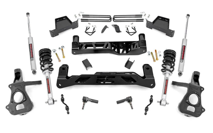 | features | Can run factory 20-inch wheels*. Provides highly sought level stance. Includes pre-loaded coil for no-fuss assembly High clearance crossmember design gives unmatched ground clearance. 100% precision laser cut materials using the latest computer aided design process. Fabricated blocks are stronger and offer a longer lifespan than cast blocks. Includes application valved N3 series shock absorbers which offer the best in balanced performance for on and off-road use. |