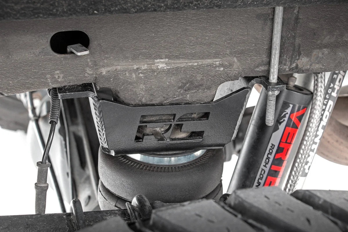 | features | Easy to install. Durable powder coated steel brackets. Push to connect air fittings. Internal Bump stop in Air Bag. Double convoluted Air Bag. Complete kit. Levels truck when towing for safer load carrying. Includes DOT approved air line. Front & Rear Headlight Adjustment brackets included for 2021 models with headlight actuators. |