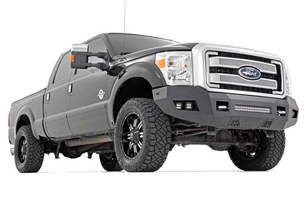 | features | Easy to install! Durable, steel construction Includes (4) Rough Country LED Cubes Includes 20in Rough Country LED Light Bar Retains factory tow hooks Retains factory proximity sensors |