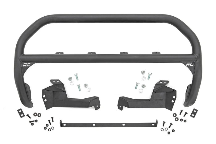 | features | Easy bolt-on install 3-inch diameter steel tubing Corrosion resistant black powder coat Added protection for the front end of your vehicle Features stamped "RC" logo Bull bar features 5-year limited warranty Light bar features 3-year limited warranty |