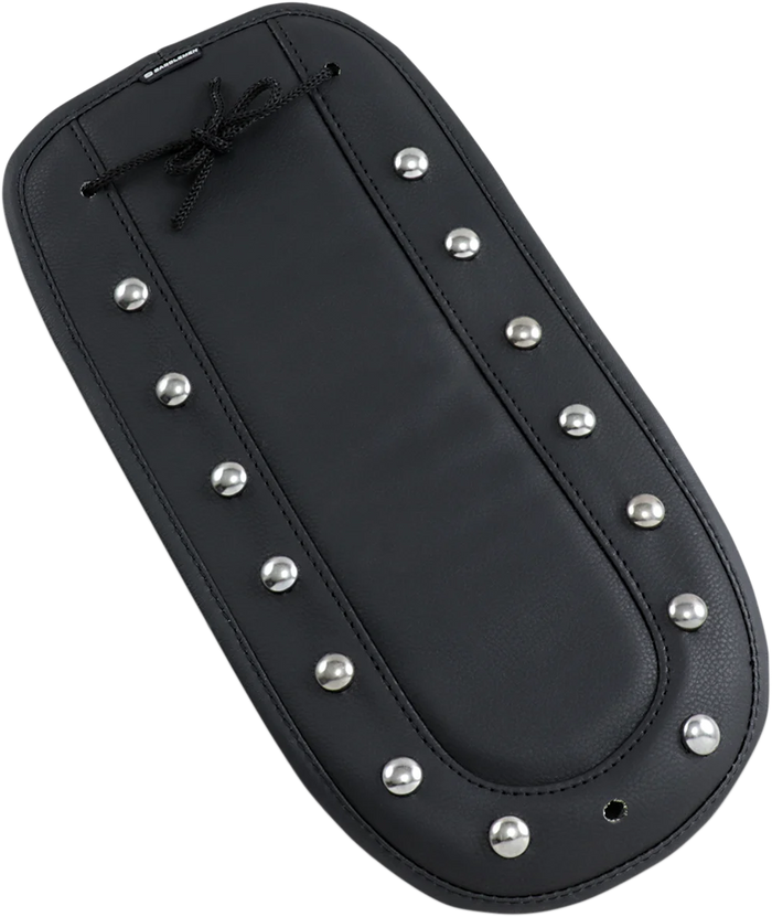 Decorative trim for solo seat installation. Contoured to fit fender. Covers marring of paint from pillion installation. Installs under solo seat and rear seat mount tab. Matches Saddlemen seat, luggage and tank chaps. Popular Desperado styling with studs, conchos and leather ties. Soft fender protector backing and attractive edge welting. Made in the USA.
