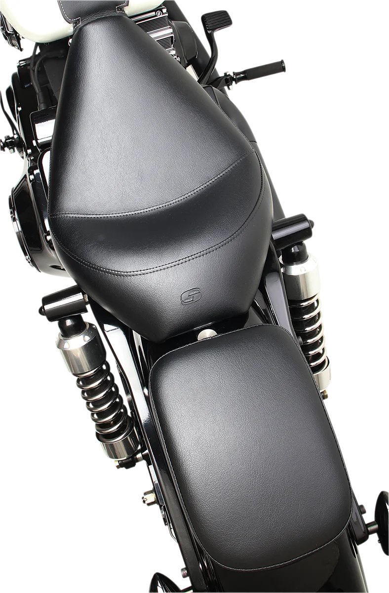 One of the lowest profile and best looking pillions on the market. Each pad attaches easily and securely, unique dry-installation, dual-cavity suction cup and can be removed just as easily using the built-in quick release pull tab. The pads' non-abrasive liner also ensures your expensive rear fender paint job is protected during attachment or removal. Made in the U.S.A.. Not for passenger use; for cosmetic use only.. Pads should be installed dry; do not wet either fender or suction cups during installation.. Not for use in hot, wet or rough conditions..