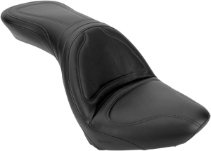 Exclusive unique split-cushion design separates the seating surface from the lumbar support, reducing tailbone and back pressure for maximum long-range comfort. Supple SaddleHyde™ offers a combination of comfort, glove-soft leathery feel and weatherproof, no-maintenance good looks. SaddleGel™ in both driver and passenger portions increases comfort even during long trips. Comfortable touring design with ergonomic styling. Made in the U.S.A..