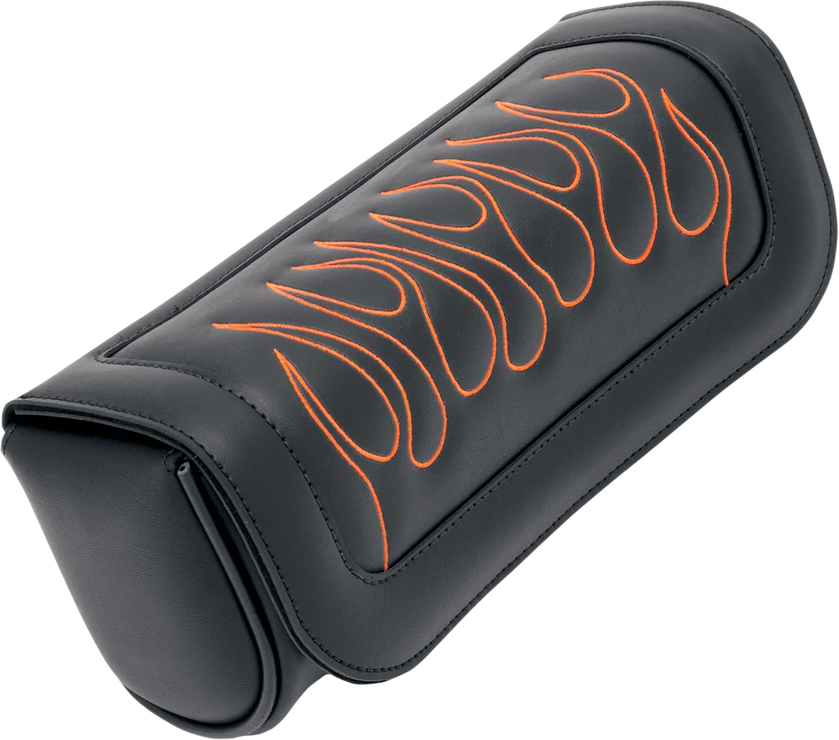 Easy to use hook-and-loop closure with D-ring and strap mounting. Features deep-textured 3-D embroidered flames. Made to match Highwayman Tattoo saddlebags.