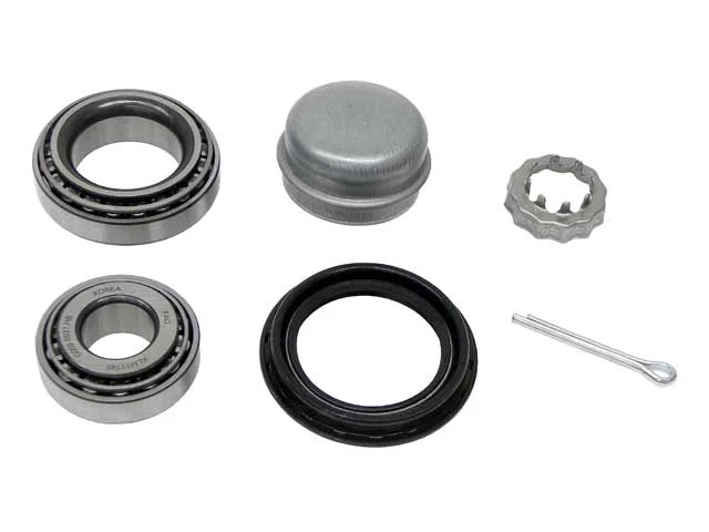 This brand contains: (2) Wheel Bearings, (1) Seal,(1) Retaining Ring, (1) Grease Cap, and (1) Cotter Pin.