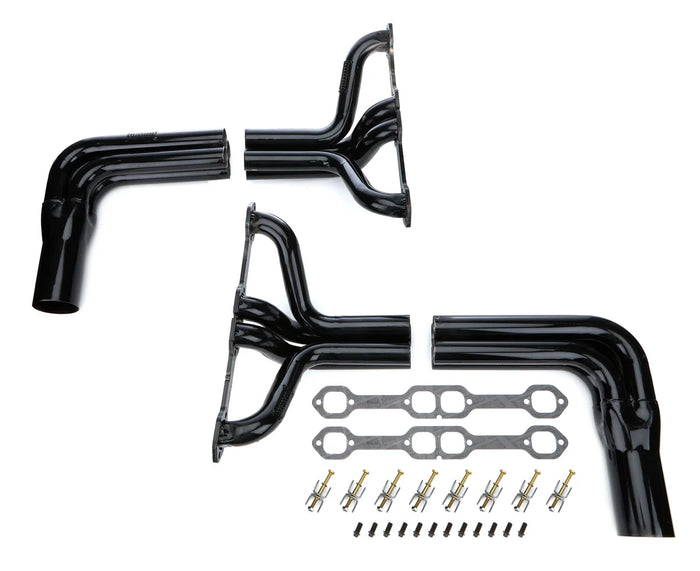 Headers - IMCA Modified - 1.75 to 1.875 in Primary - 3.5 in Collector - Gaskets / Hardware Included - Steel - Black Paint - Small Block Chevy - Kit