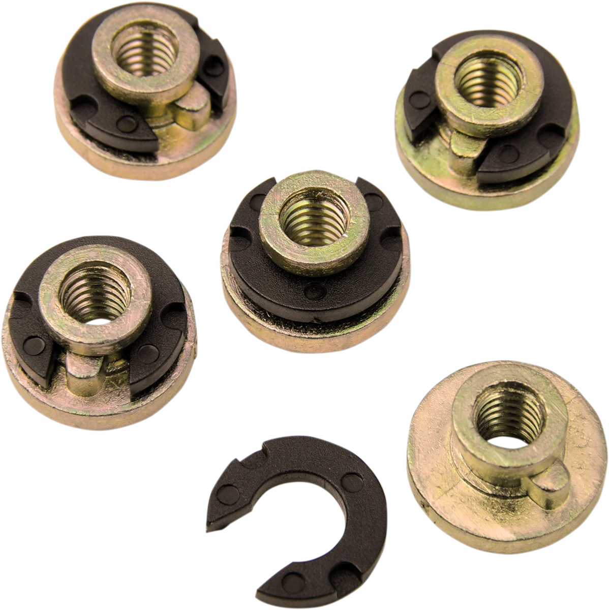 Use for custom seat mounting or replacing OEM parts. 1/4"-20 die-cast nut with nylon retaining washer. DS-490044 replaces the "E" clip on DS-490045.