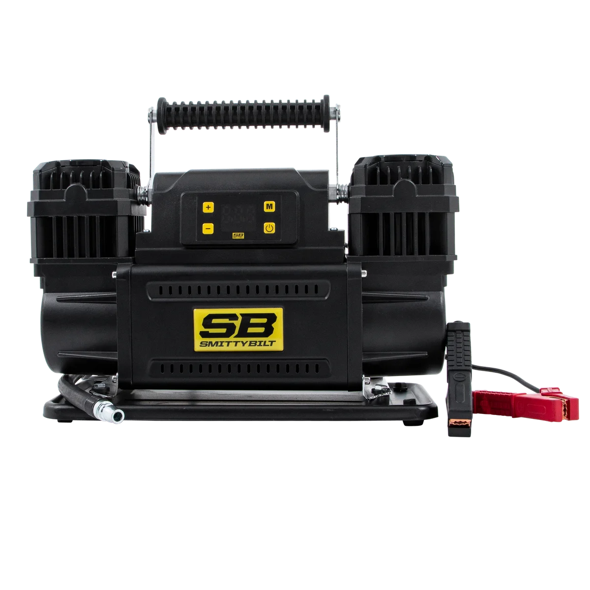 | Description_MKT | The Smittybilt Dual Head Air Compressor is the ultimate solution for adjusting your tire pressure to handle any terrain. With its oil-less direct drive motor, it delivers an impressive 10.6 CFM of output and includes an automatic shutoff for stress-free operation. Whether you're tackling rocks, mud, or rugged slopes, this powerful compressor ensures you're never stranded, making it a must-have for any off-roading adventure. The convenience of airing up or down in the wild allows you to optimize tire pressure for better traction and durability, so you can confidently face whatever the trail throws your way. |