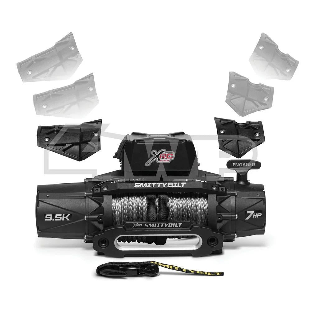 Description_MKT | Faster. Stronger. Easiest to use. The XRC Gen 3 winch by Smittybilt has been designed from the ground up with innovative, user-friendly features and improved power efficiency. The 7.0 horsepower motor boasts an average line speed increase of 12% over its Gen 2 predecessor, adding more speed and power with less amp draw at load. The ergonomic remote controller has a load indicator warning system, so you ensure always know how much your equipment can handle. Winching in dark conditions is also a breeze with the remote's built-in flashlight. If additional light is needed, a 12-volt power post is located on the control box. Two magnets are built into the controller for easy placement on any metal surface, leaving it out of the way when not needed. A high-viz clutch lever features large lettering, allowing you to see whether your winch is engaged/free spooled at a glance. Stylish body armor can be detached or used to customize your winch to your vehicle. The XRC Gen 3 winch is available with 9.5k and 12k load-capacity options, and the Comp Series upgrade includes a synthetic rope and aluminum hawse fairlead. Buy with confidence these winches are backed by a lifetime mechanical warranty, a 5-year electrical warranty, and Smittybilt's legendary customer service. |