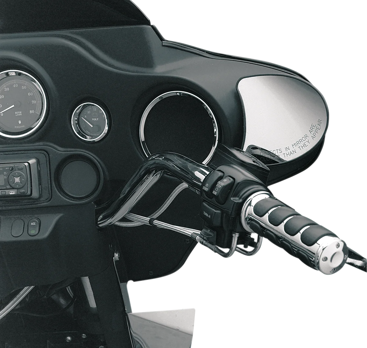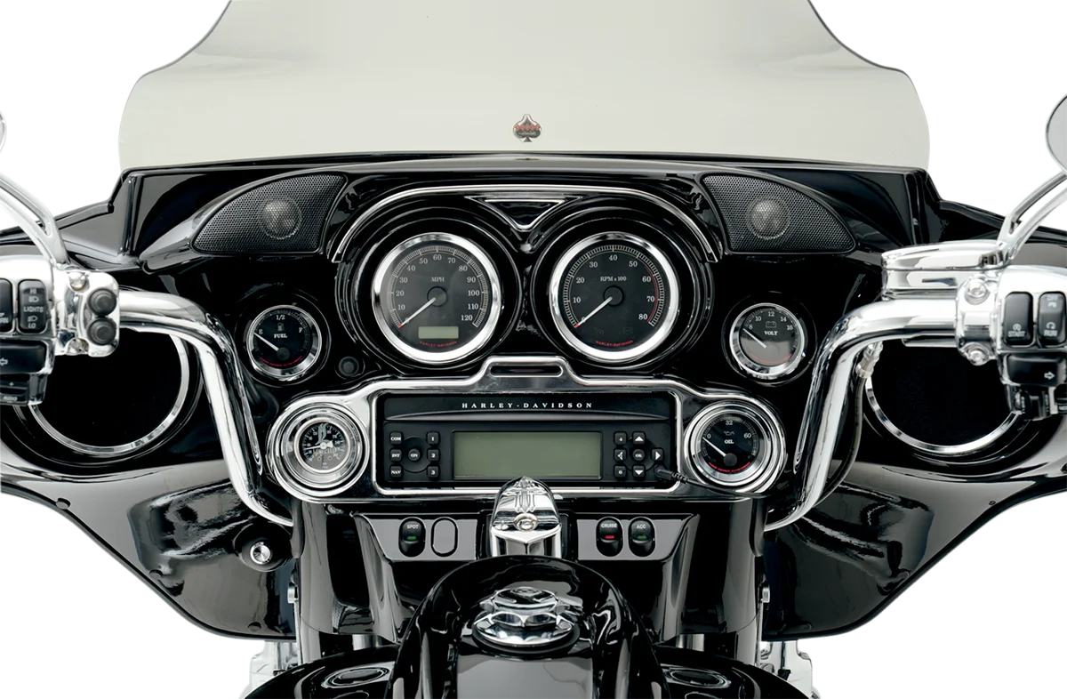 Formed from aluminum and chrome plated. Easily attach with included trim tape. Complements the Drag instrument bezels.