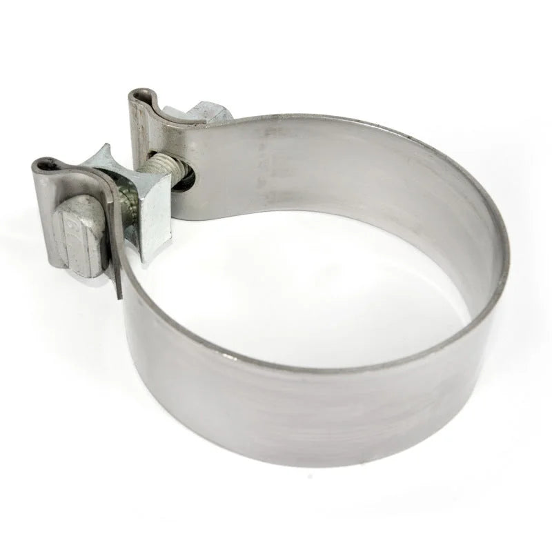 3" Accuseal high torque band clamp. 16 gage strap is made from 300 series stainless steel and comes with Zinc plated 3/8" T-Bolts and Reaction block. These are the best high torque clamps available and will not oval the tubing like standard saddle clamps.