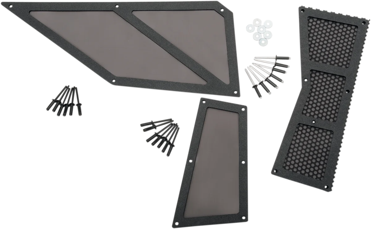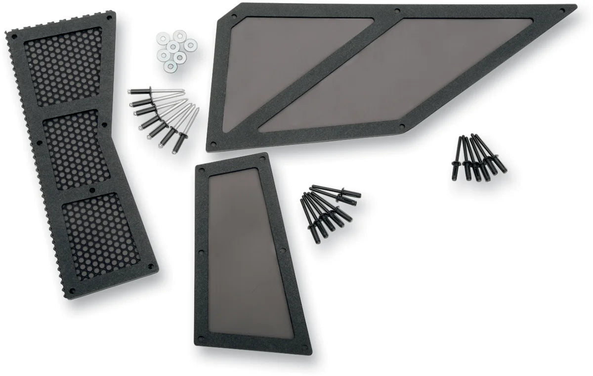 Left-side kits keep clutches running cooler and extend belt life, while right-side kits reduce underhood heat from the exhaust system for more consistent power production. Designed to remove hot air from the chassis and maintain higher horsepower by delivering additional cold air to the intake. Vents use a powder snow pre-filter that blocks snow and ice but lets air pass through. Required fasteners and detailed installation instructions included. Features SLP's Max Flow™ air vent technology, which utilizes injection molding to encapsulate Flow-Rite™ for the left side kits. Stainless steel mesh on the right side kits to provide maximum airflow.